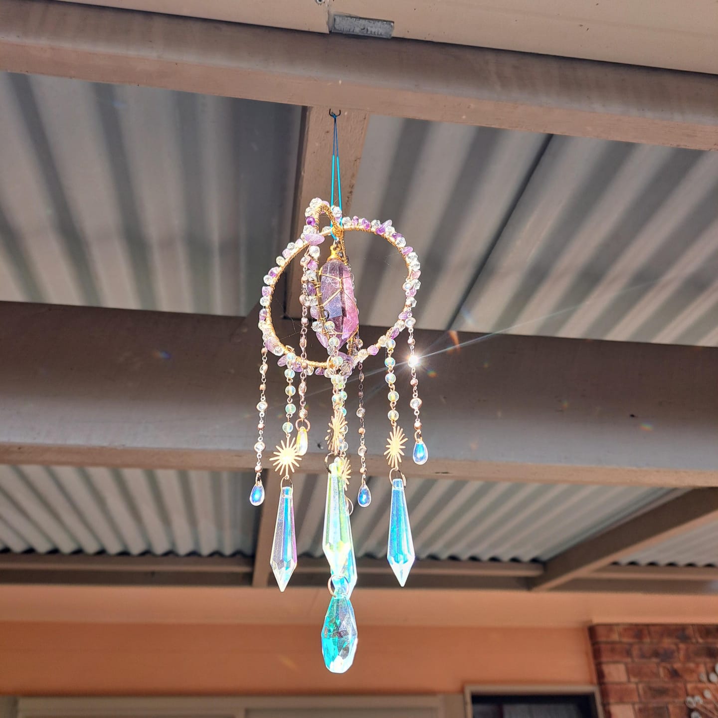 Hang your Divinity Suncatcher by any window to turn your room into a sparkling oasis of sunlit sparkles. Enhance your spiritual being as you charge your crystals in the sunlight and moonlight.